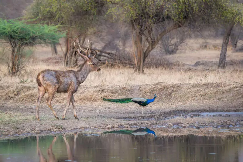 Wake up early to enjoy a peaceful birding walk in Keoladeo or explore surrounding villages to see local life. After breakfast, drive to Ranthambore National Park, one of India’s most famous tiger reserves. Upon arrival, relax at your lodge before your first evening safari. As the sun sets, your guide will help spot tigers, leopards, sloth bears, hyenas, and a variety of birds amidst the rugged terrain. Overnight stay near or inside the park.